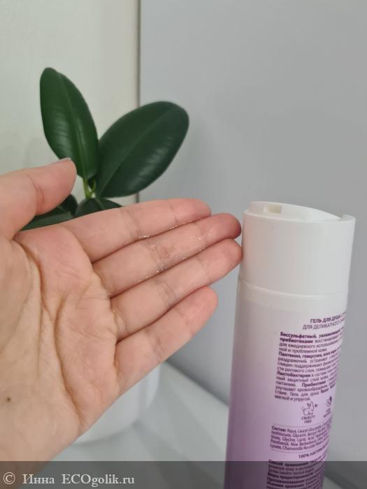 Гель средней плотности, хорошо распределяется и умеренно пенится. Очищает аккуратно, без агрессии.