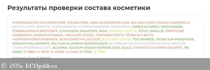 Несмотря на то, что блеск мне нравится и он мне подошёл, сайт не одобряет его состав. Вот скрины проверки, так что лучше проверьте сами, можно ли вам им пользоваться или лучше не стоит.