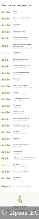 Сайт не нашел лишь парфюмерную отдушку, в остальном состав полностью идеален.