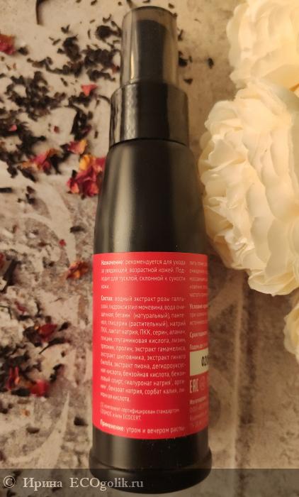 Основное действующее вещество здесь гидролат розы галльской. Он отлично увлажняет и успокаивает кожу лица. Также в составе много экстрактов, которые благоприятно воздействуют на кожу, ухаживают за ней и улучшают цвет и тон лица.