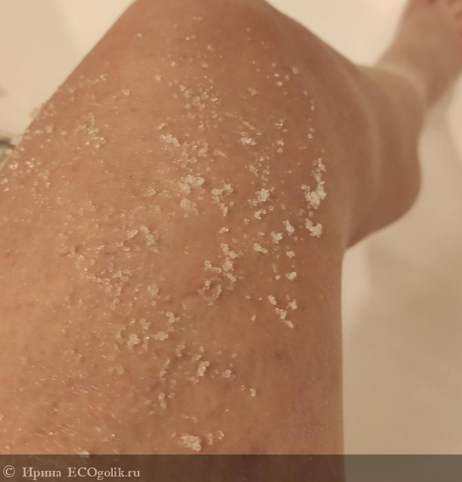 Кожа очень мягкая, гладкая и очень приятно пахнет. Благодаря сахару кожа очищена и ощущается лёгкость в теле.
