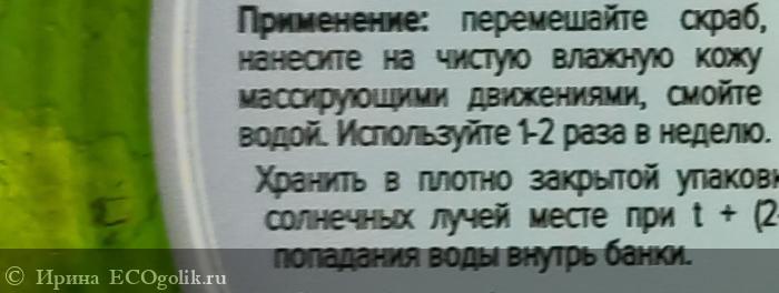 На дне баночки имеется этикетка с описанием действия скраба, состав и способ применения.