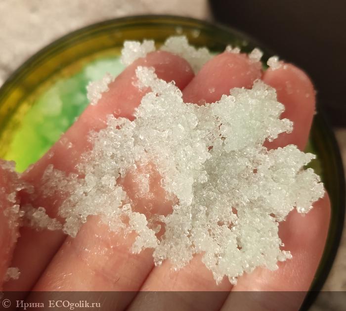 Основной компонент скраб - это конечно же, сахар. Также в составе есть морская соль, но я ее не ощущаю, при применение такой состав комфортен.