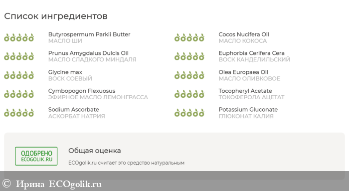 "Экоголик" считает бальзам полностью натуральным, что является несомненным плюсом.
