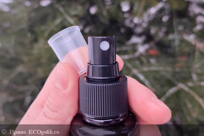 Флакон имеет объем 100 мл и сделан из затемненного пластика. У производителя есть также версия объемом 50 мл (в бутылочке из темного стекла).