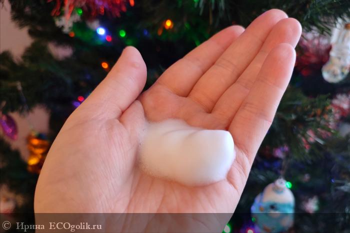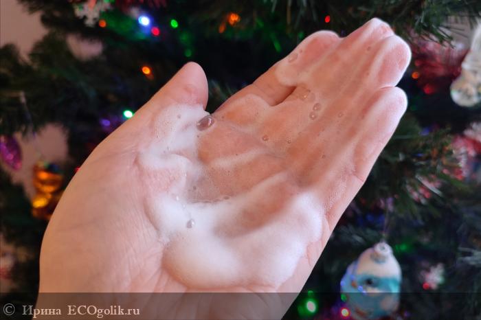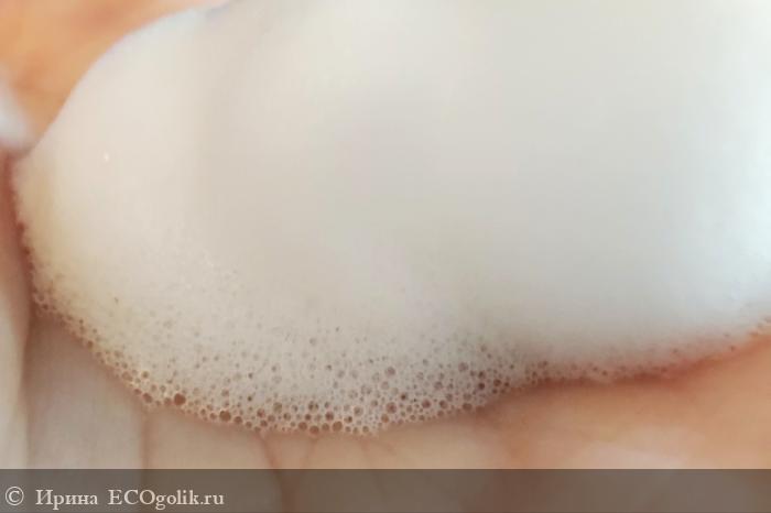 Пенка достаточно крепкая, но в то же время легкая, воздушная, как облачко. Она не такая плотная, как, например, пена для бритья, но все равно держит форму. Средство для умывания преобразовывается в множество пузырьков.