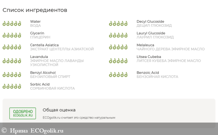 Состав пенки портал "Экоголик" оценил на "отлично" от и до.