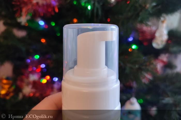 На бутылочке с пенкой есть дозатор, а сверху - крышка, которая защищает от нечаянного нажатия. Мне нравится, что крышка прозрачная, так как, не снимая ее, сразу можно убедиться, что средство не протекло.