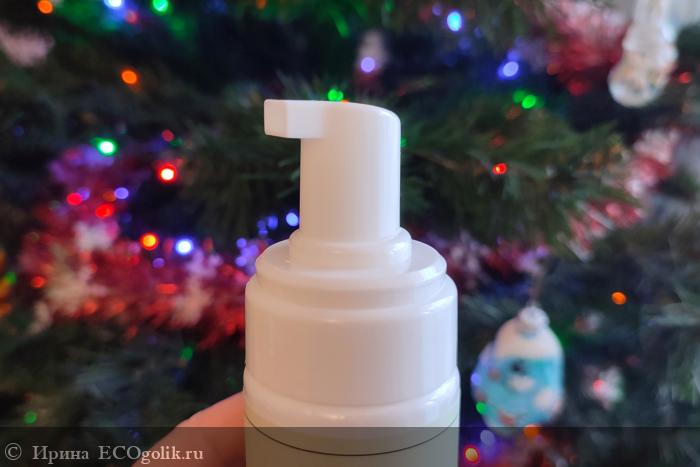 Флакон с пенкой - не исключение. Он оформлен в белых и светло-зеленых тонах.