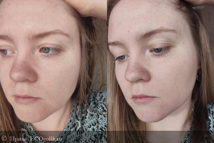 На щеке возле носа результат, я не сказала бы, что сильно заметен. Я еще и додумалась разные щеки сфотографировать