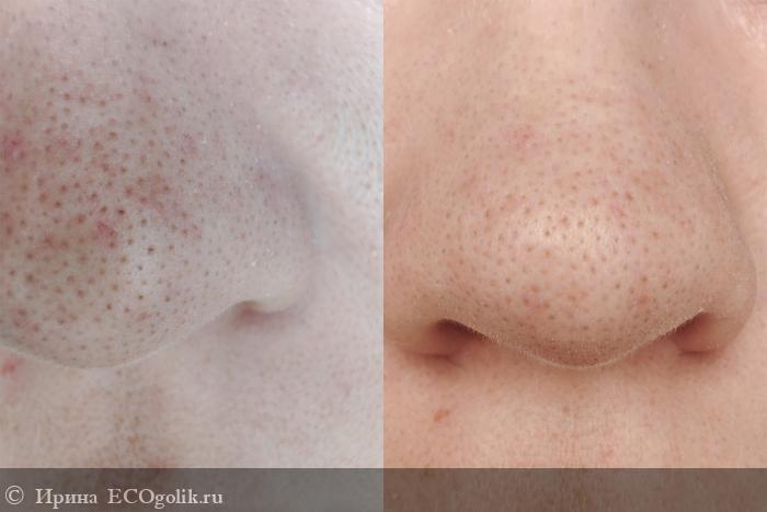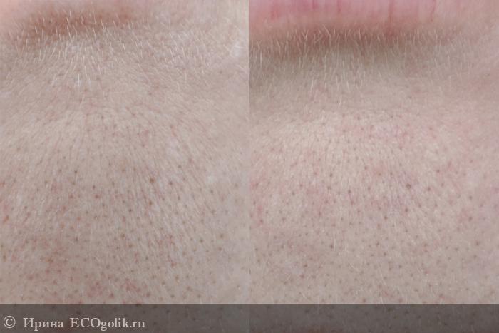 А вот с подбородком картина уже более наглядная. Заметно, что поры стали почище.