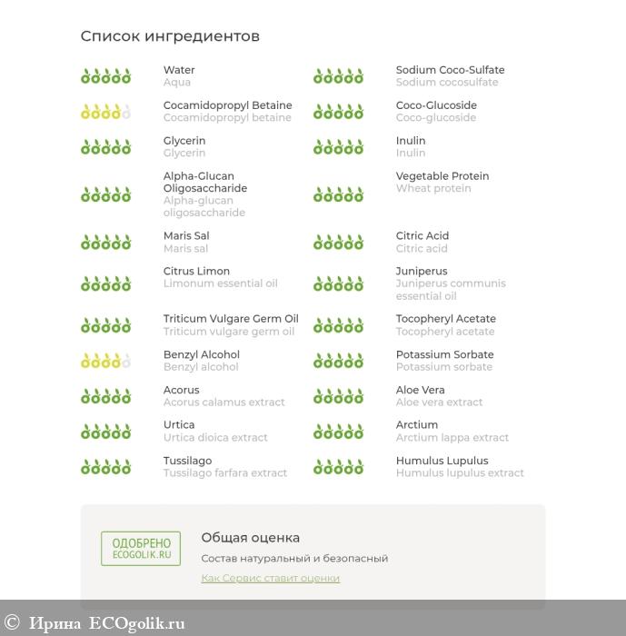 В завершение хотелось бы сказать о составе шампуня. Он очень хороший, никаких нареканий при проверке не возникло: