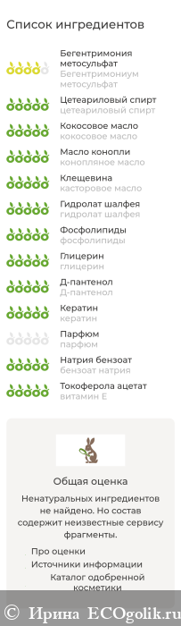 - Бегентримониум метосульфат): основной кондиционирующий агент, отвечает за легкое расчесывание, антистатический эффект и мягкость.