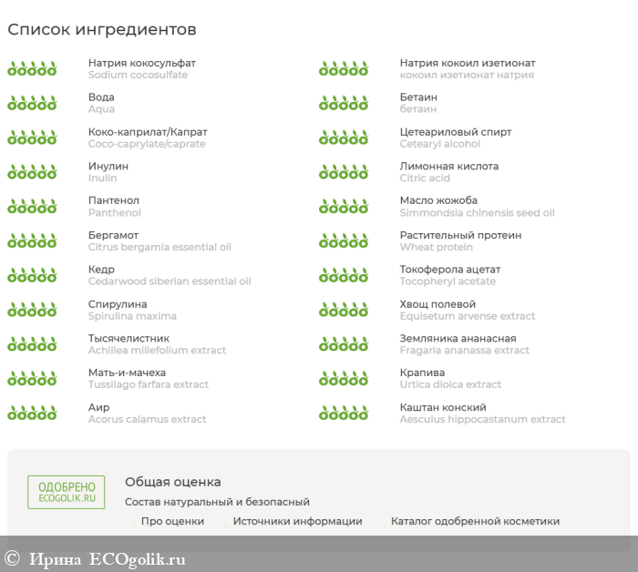 Шампунь имеет натуральный состав. в нем отсутствуют SLS, парабены. Наличие в составе трав радует.