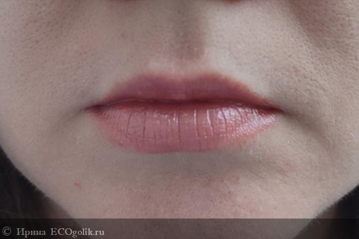 У помады есть некая перламутровая нотка, как мне показалось. Я такое не сильно люблю, но это вовсе не недостаток средства, дело вкуса. Помада достаточно стойкая, нет необходимости часто подкрашивать губы.