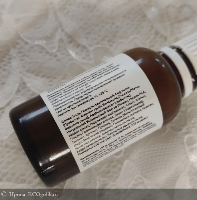Картонной коробки у продукта нет. Но мне кажется, что она и не к чему. Лишний мусор. Также как и защитный блистер. Оформление продукта вполне себе соответствует политике бренда натуральной косметики. Флюид продаётся во флаконе из затемненного стекла, дизайн простой и лаконичный. На этикетке есть полное описание средства.