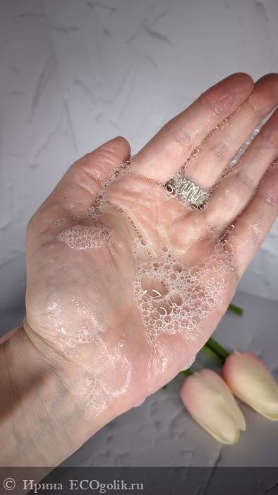 Пенится мыло отлично. Я вначале переживала, что из-за очень жидкой консистенции будет плохо пенится. Но зря, пены получается много.