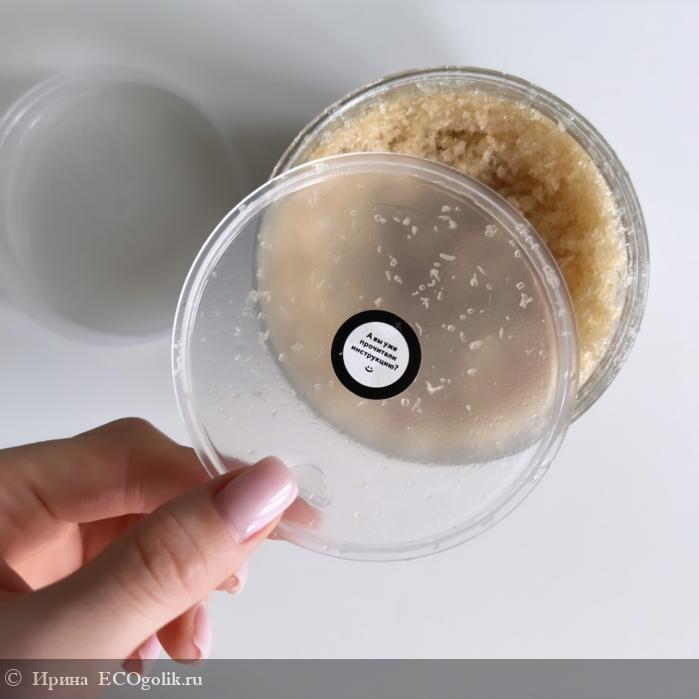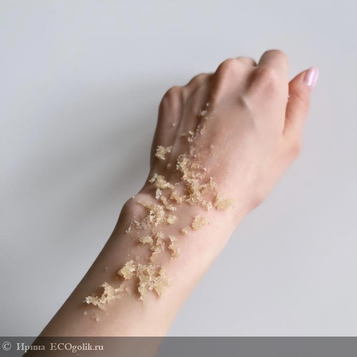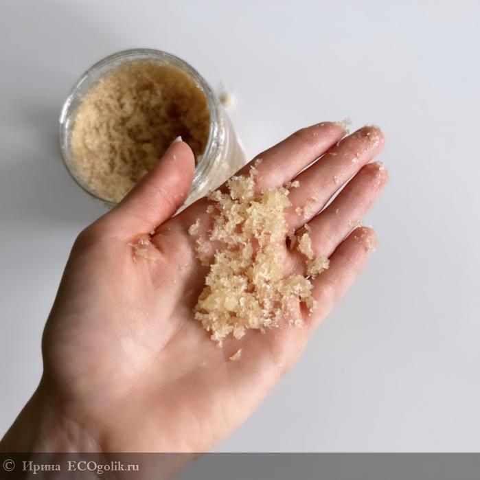 Объяснить текстуру скраба очень просто. Представьте в своей руке кокосовую стружку, немного крупных частичек сахара и всё это пропитано питательным маслом. Собственно вот и скраб