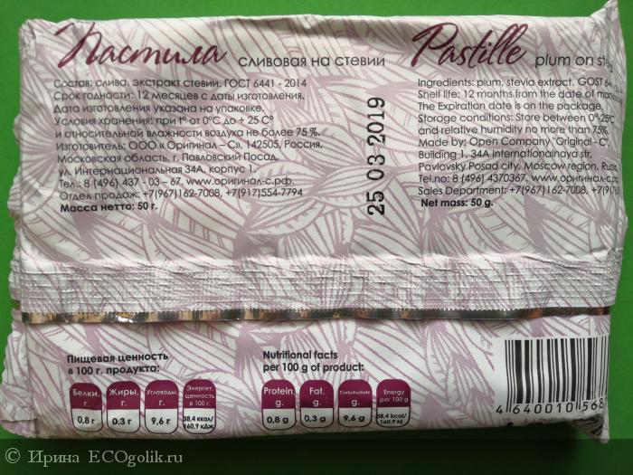 Цена этой пастилы в нашем магазине - 85 рублей за упаковку 50 г. Срок годности: 12 месяцев с даты изготовления.