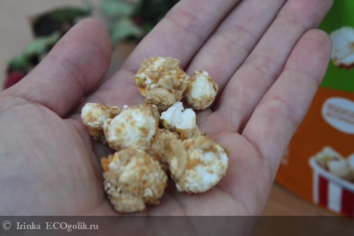 Попкорн аппетитный, ароматный, пахнет медом. Сладости в нем в меру