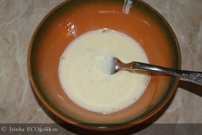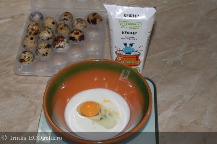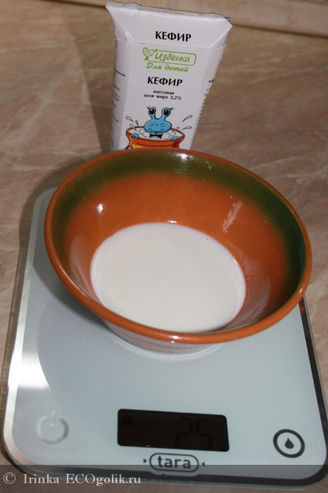 Для приготовления теста нам необходимо налить в тарелку кефир