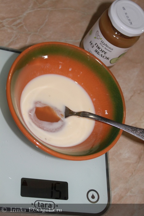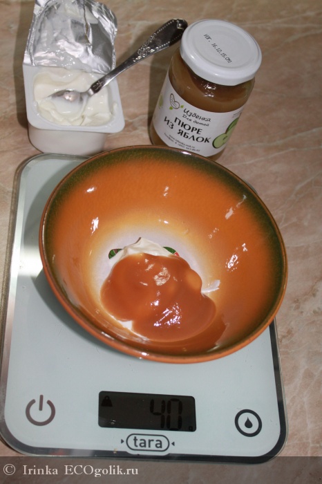 пюре из яблок ВкусВилл – 15 г (в зависимости от предпочтений ребенка яблочное пюре может быть заменено на любое другое как в коржах, так и в креме);