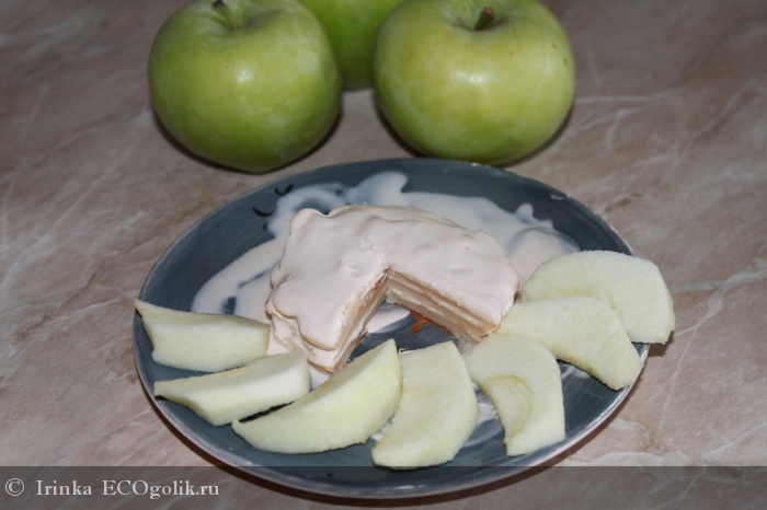 В сам крем по желанию можно добавить небольшие кусочки яблока. Можно нарезать яблочко вприкуску.