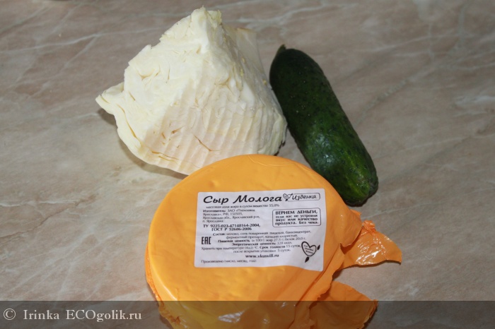 Он состоит из белокачанной капусты, огурца и сыра "Молога".