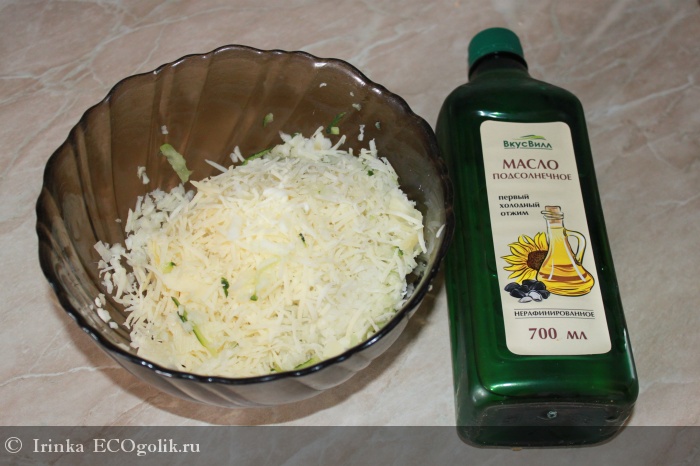 Заправляю подсолнечным или оливковым маслом. По желанию можно подсолить.