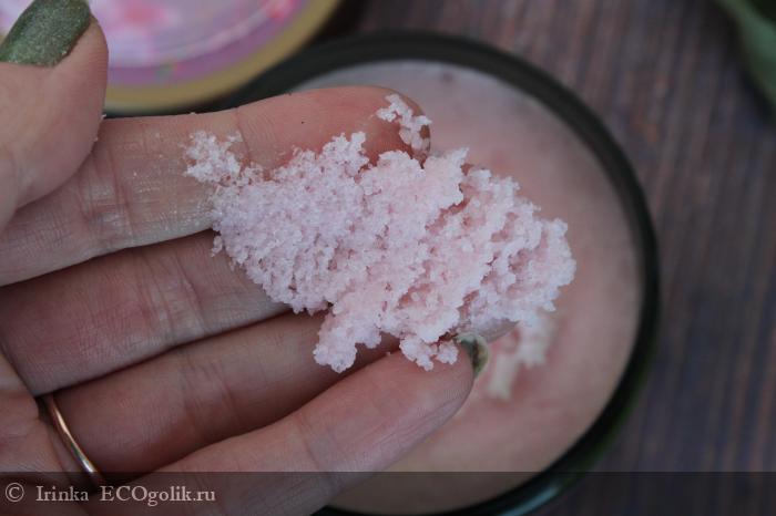 Сам скраб розового цвета.