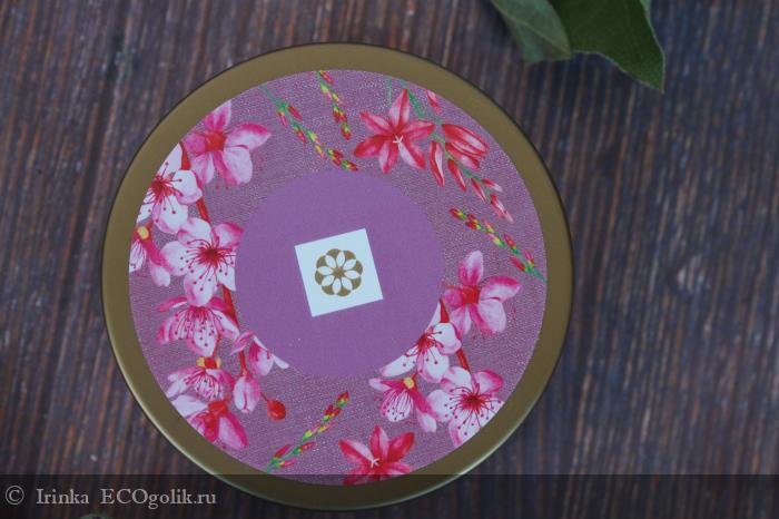 Упаковка красочная. Баночку опоясывает круговая наклейка. На фото она выглядит фиолетовой, но в жизни цвет отличается, он ближе к малиновому. Крышечка тоже красиво оформлена