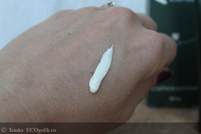 Он кажется плотным, но на самом деле очень здорово ложится на кожу, супер классно ее увлажняет, не оставляя жирного следа. Он легко распределяется.