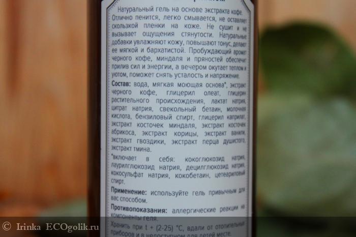 Этот гель наполнен пряностями: кофе, корицей, гвоздикой, прцем душистым, миндалем.