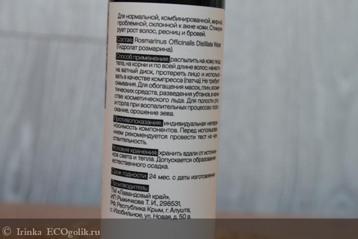 . Сейчас у меня гидролат розмарина от бренда Лавандовый край.