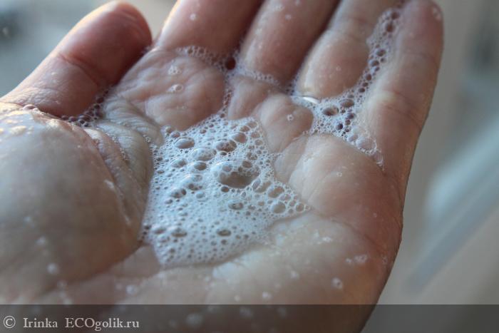 Пенообразование нежное, не обильное, комфортное. Пользоваться средством очень приятно.