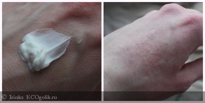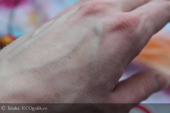 Если посмотреть на фото руки, где я только знакомлюсь с кремом, то видно, что на ней нет этих красных пятен.