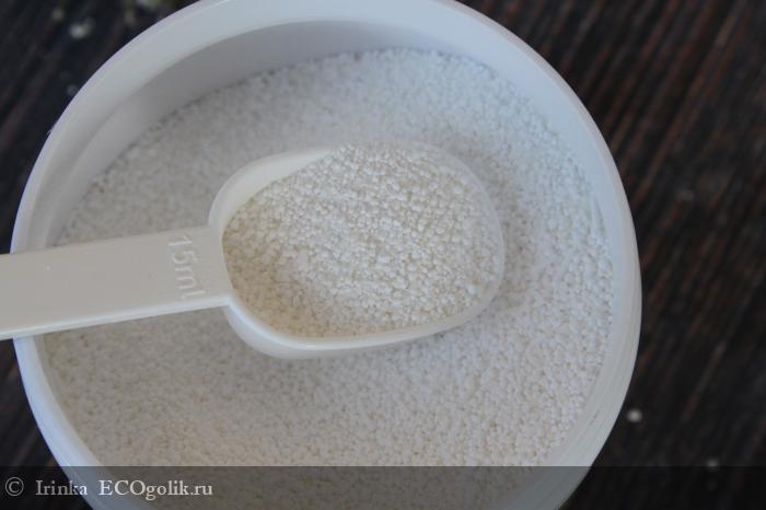 Его можно использовать как точечно, так и при сильных загрязнениях можно добавить 1 мерную ложку в барабан стиральной машины, чтобы усилить действие средства для стирки. Я добавляла к гелю для стирки "Суперляля", когда были сомнения в том, а справится ли гель самостоятельно.