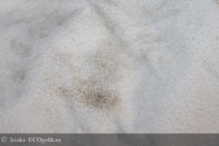 Я примерно помнила, где находится пятно, поскольку у полотенца есть капюшон, сын его надевает после водных процедур и ходит, и как раз оно было сзади