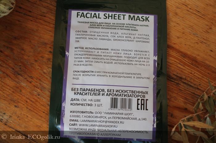 Irinka: Miss Laminaria Тканевая маска на основе альгината натрия, аромат лаванды