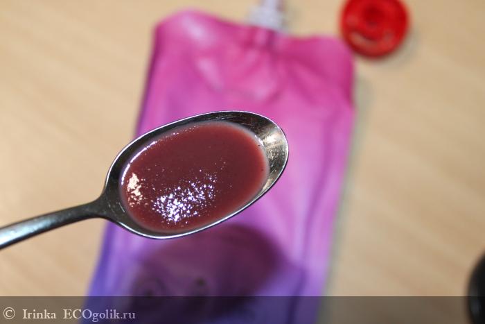 Свеклу во вкусе я явно не ощущаю, все же вкус фруктовых пюре тут побеждает свеклу. Преобладает, конечно же, яблоко, но также ощущается свежесть малинки и клубнички. Вкус очень интересный. На 100 г продукта приходится 84 ккал.