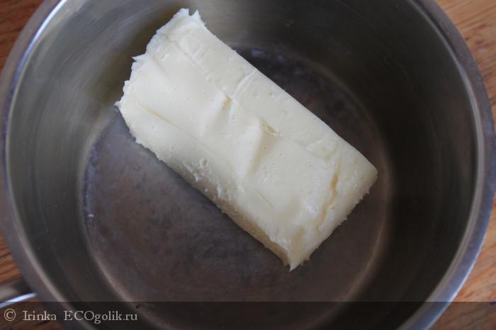 Перельем молоко в кастрюлю и поставим на греться на плиту. Масло тоже положим в кастрюльку и растопим на медленном огне.