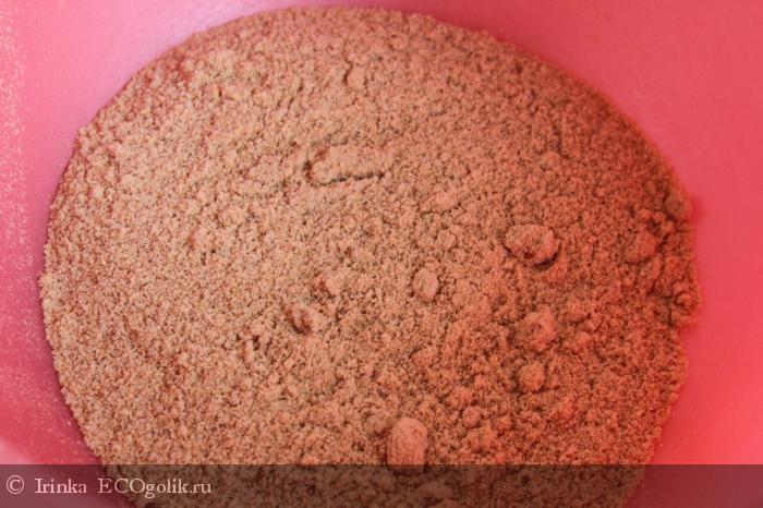 Теперь подготавливаем обсыпку, для которой нужно смешать 2 ст.л. сахарной пудры и 2 ч.л. какао-порошка.