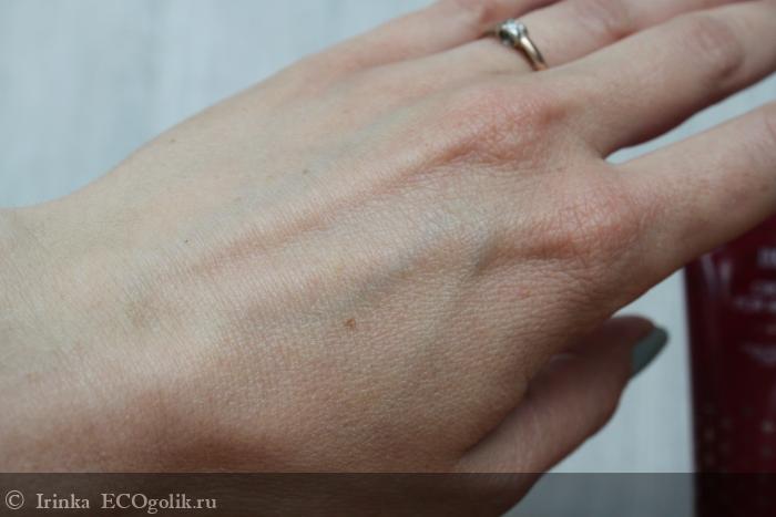 Он заметен при нанесении крема на руки. Крем обладает плотной текстурой, много его на наносить не стоит, достаточно небольшого количества.