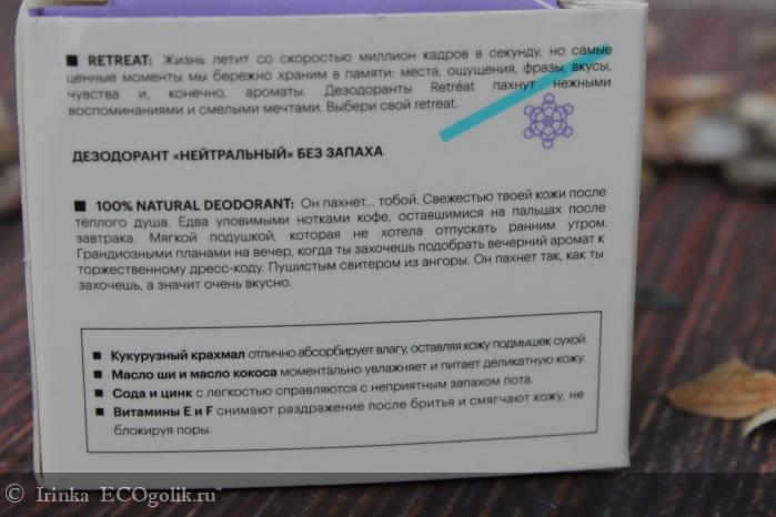 Irinka: Retreat Натуральный Дезодорант "Нейтральный" без запаха, кремовый