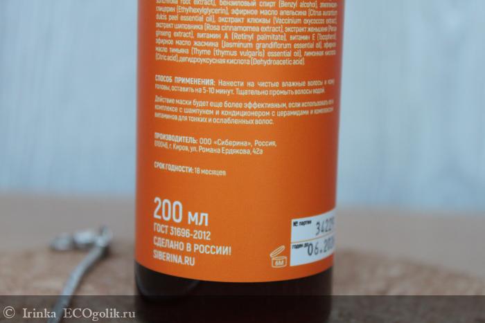 Irinka: Siberina Маска с маслом арганы и витаминами А, Е для тонких и ослабленных волос