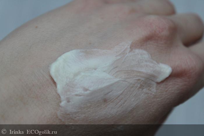 Маска обладает густой консистенцией, у нее легкий бежевый оттенок.