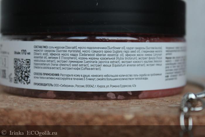 Скраб комфортно распределять по коже, хорошо ощущается массажный эффект от него, чувствуется легкое пощипывание. С помощью скраба можно хорошо проработать проблемные зоны, он не травмирует кожу. Средство мне понравилось, а в серии скрабов у Сиберина есть еще и другие варианты, можно подобрать по своему вкусу.