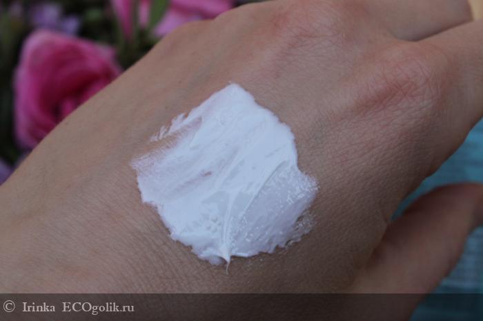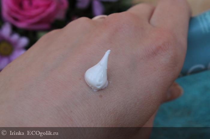 Виден блеск. Крем ощущается на руке пленкой. Я не решилась опробовать его на лице