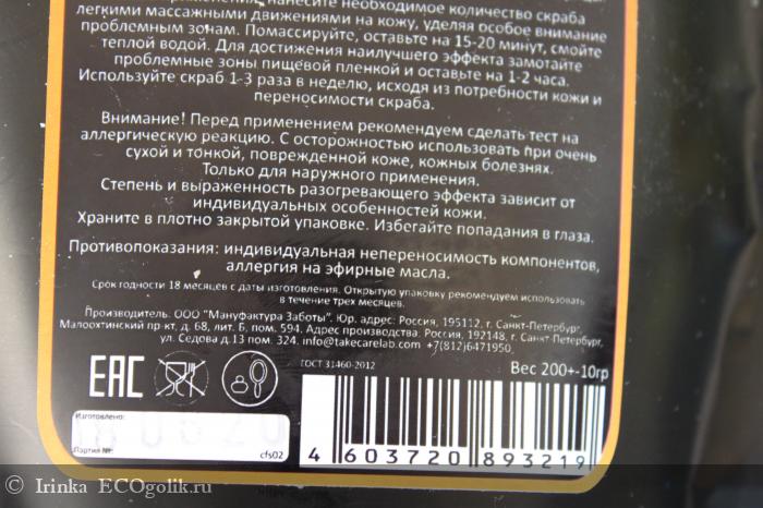 Срок годности кофейного скраба "Кофе и апельсин" Take Care Studio составляет 1,5 года. После вскрытия его следует использовать в течение 3 месяцев.