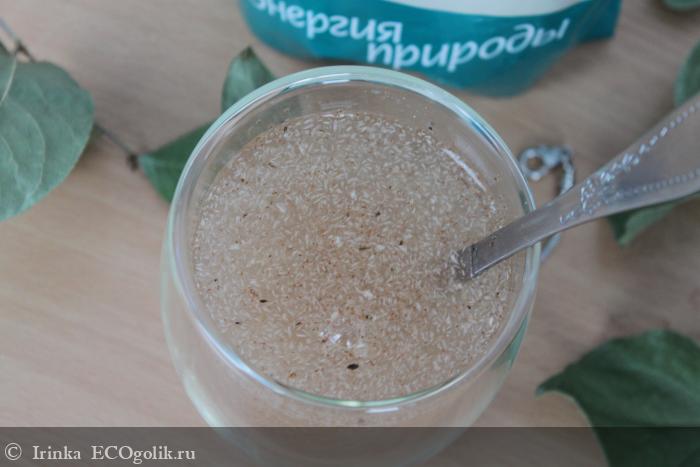 После смешивания с водой он набухает, и напиток становится густым, мне напоминает кисель, только практически не имеющий вкуса.
